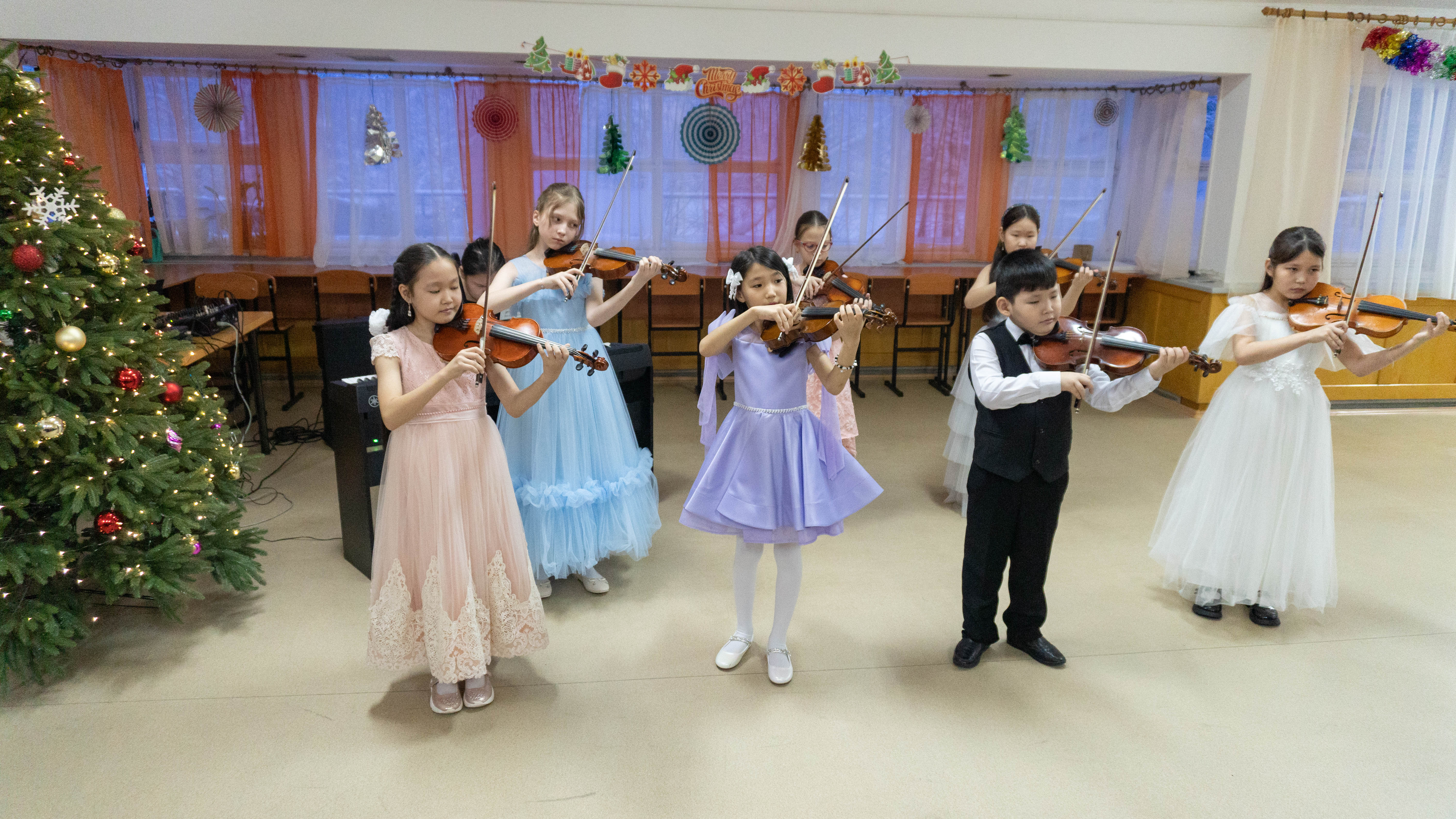 Со сцены прозвучали произведения А. Гречанинова, А. Хачатуряна, И. Филиппа, Л. Витлина, Л. Керубини и другие номера. Среди выступающих – Виталий Гаврильев (1 класс), Даяна Андреева (3 класс), Настя Лебедева (6 класс), Миша Ивутин (1 класс), Максим Местников (4 класс), а также юный ансамбль скрипачей .