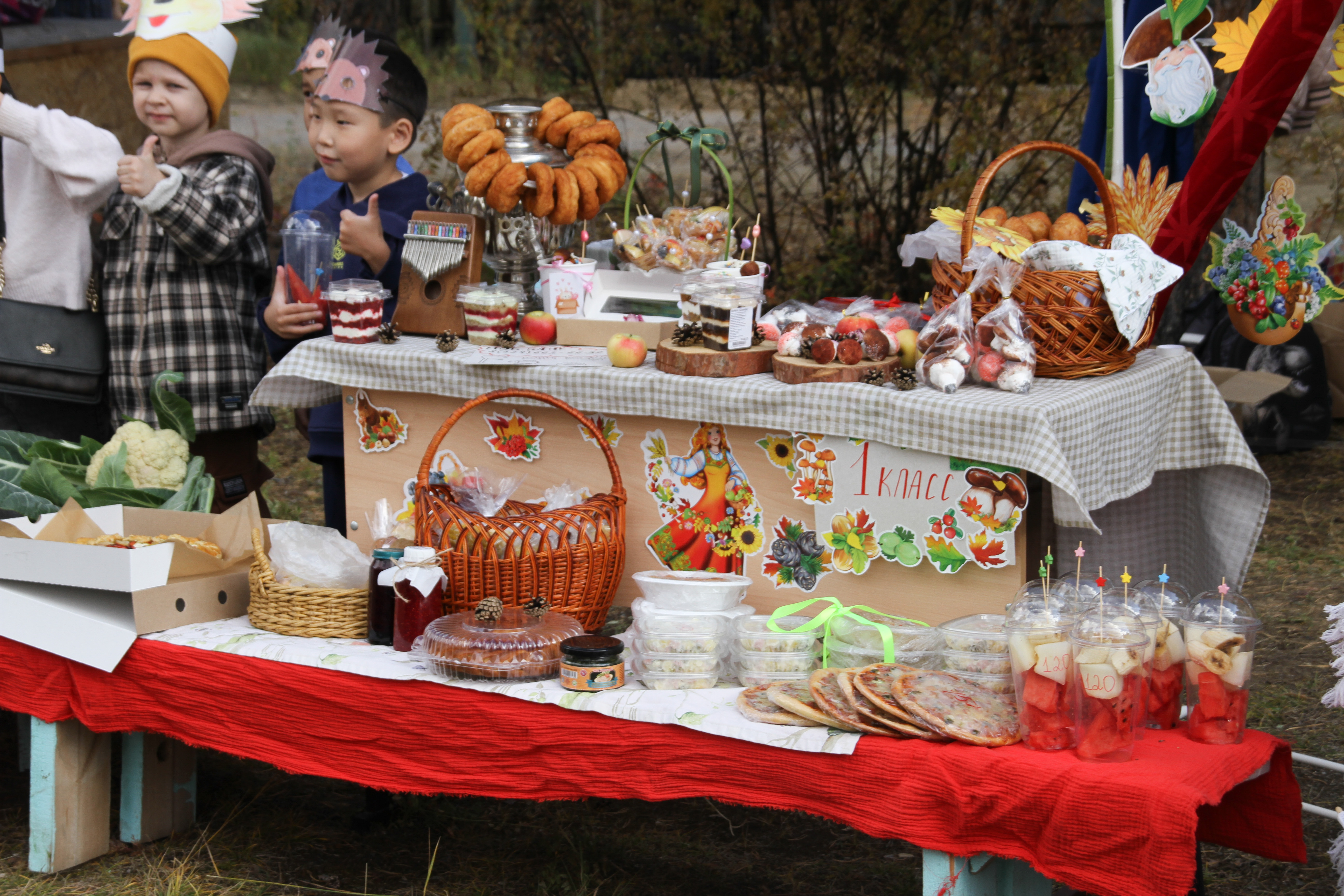 Кульминацией праздника стала ярмарка «Дары осени» на школьной поляне. Здесь развернулось настоящее пиршество красок и вкусов! Классы и творческие коллективы представили изобильные столы с домашней выпечкой, соленьями и уникальными блюдами по старинным рецептам. Жюри предстояла нелёгкая задача выбрать лучших в номинациях «Лучшее оформление стола», «Самое вкусное блюдо», «Чудо-овощ» и «Самый чистый класс» . Особую атмосферу создавала «Полевая кухня», где каждый мог подкрепиться горячей гречневой кашей с тушёнкой и ароматным чаем.