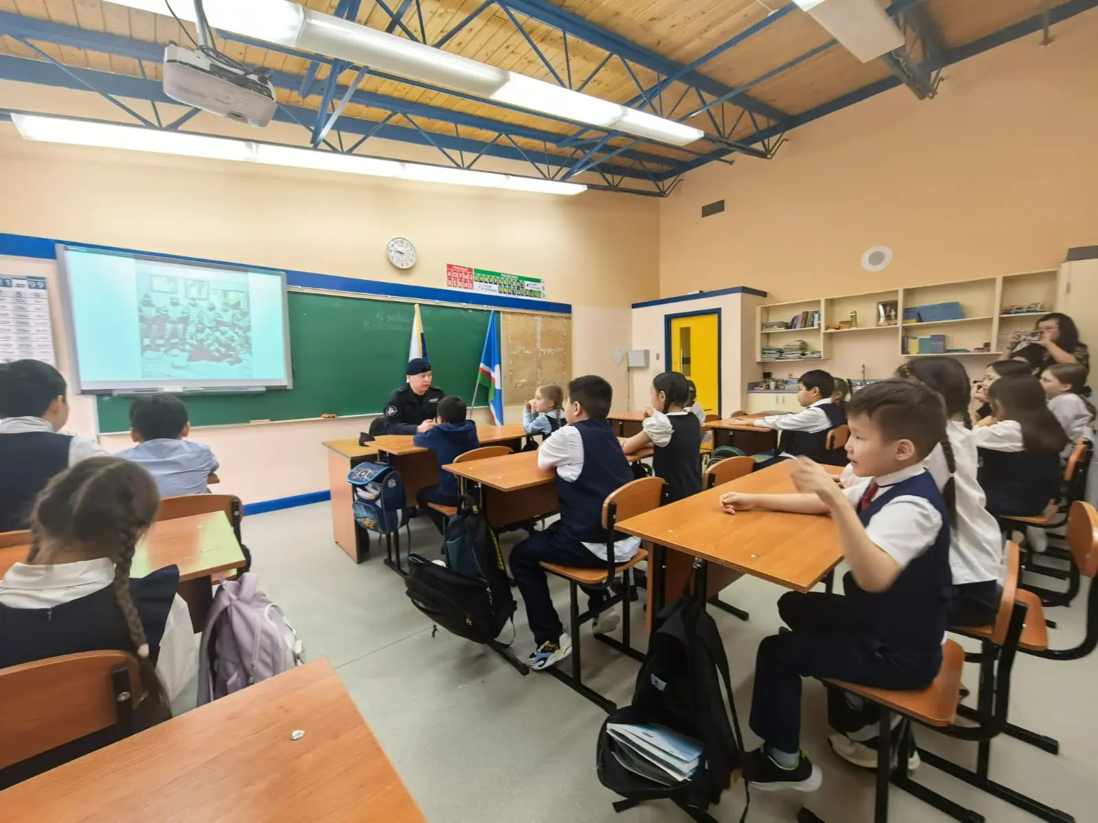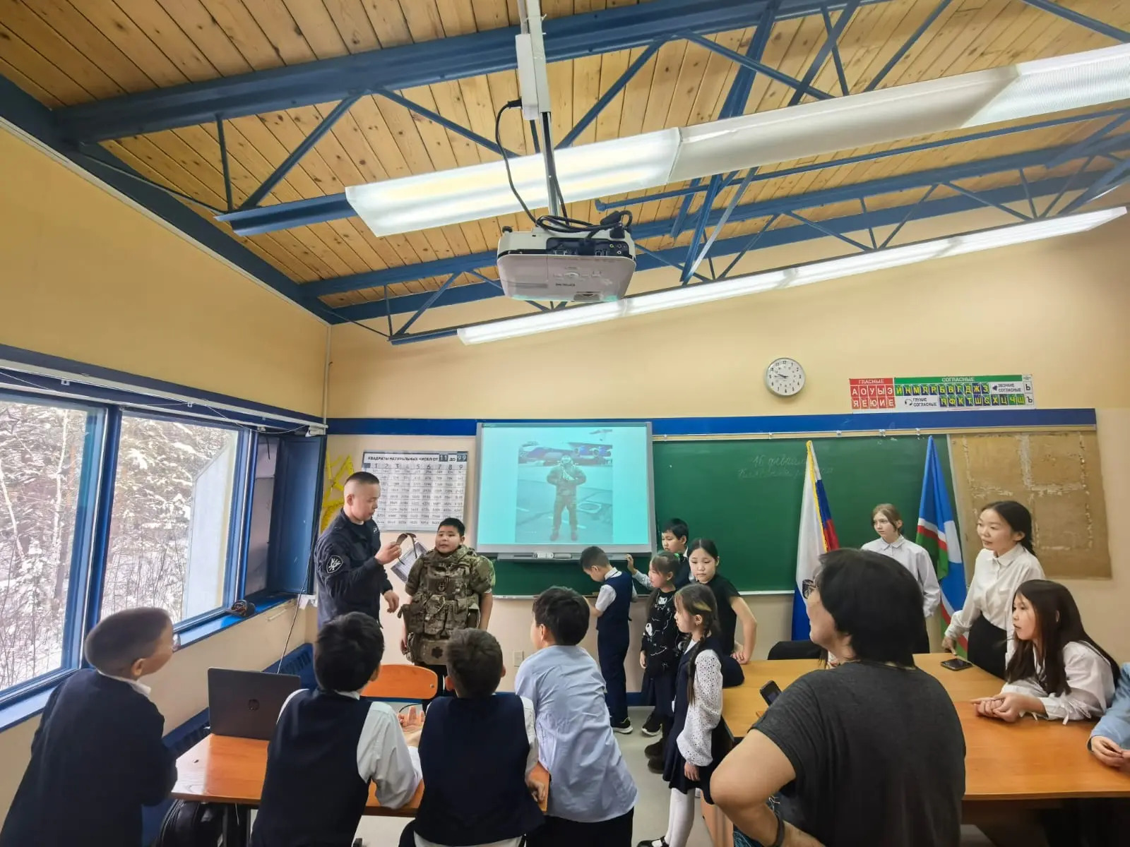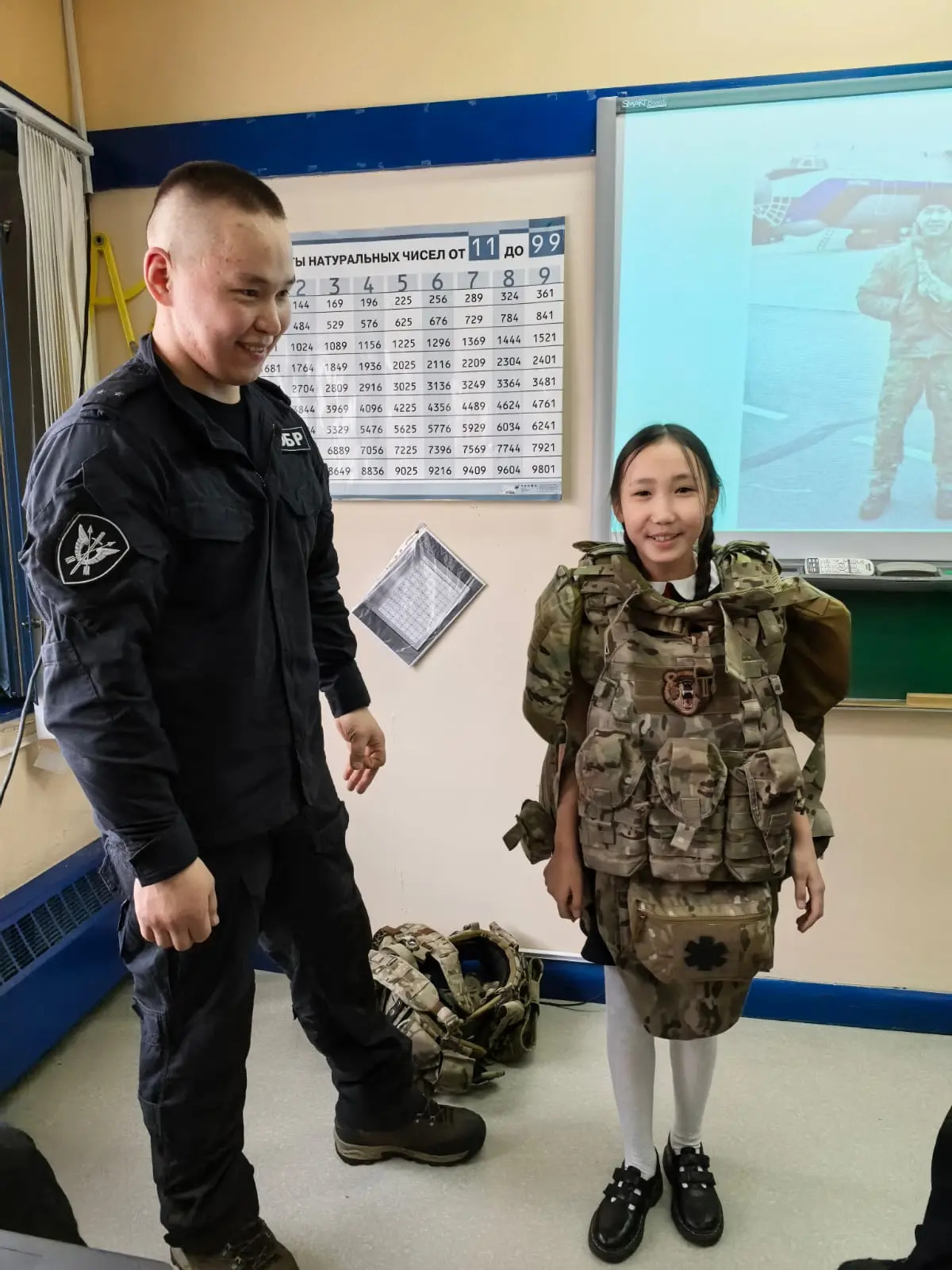 Михаил Геннадьевич доступно и интересно рассказал ребятам о мужестве, патриотизме и защите Родины. Самой захватывающей частью встречи стала демонстрация боевой амуниции! Школьники с огромным интересом слушали рассказы и смогли примерить экипировку на себя, почувствовав себя настоящими бойцами.